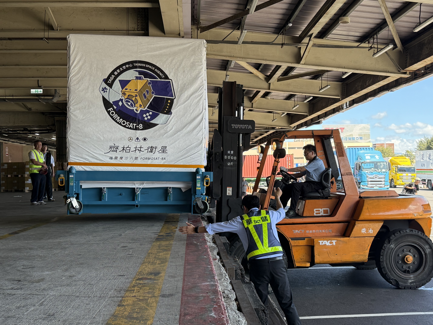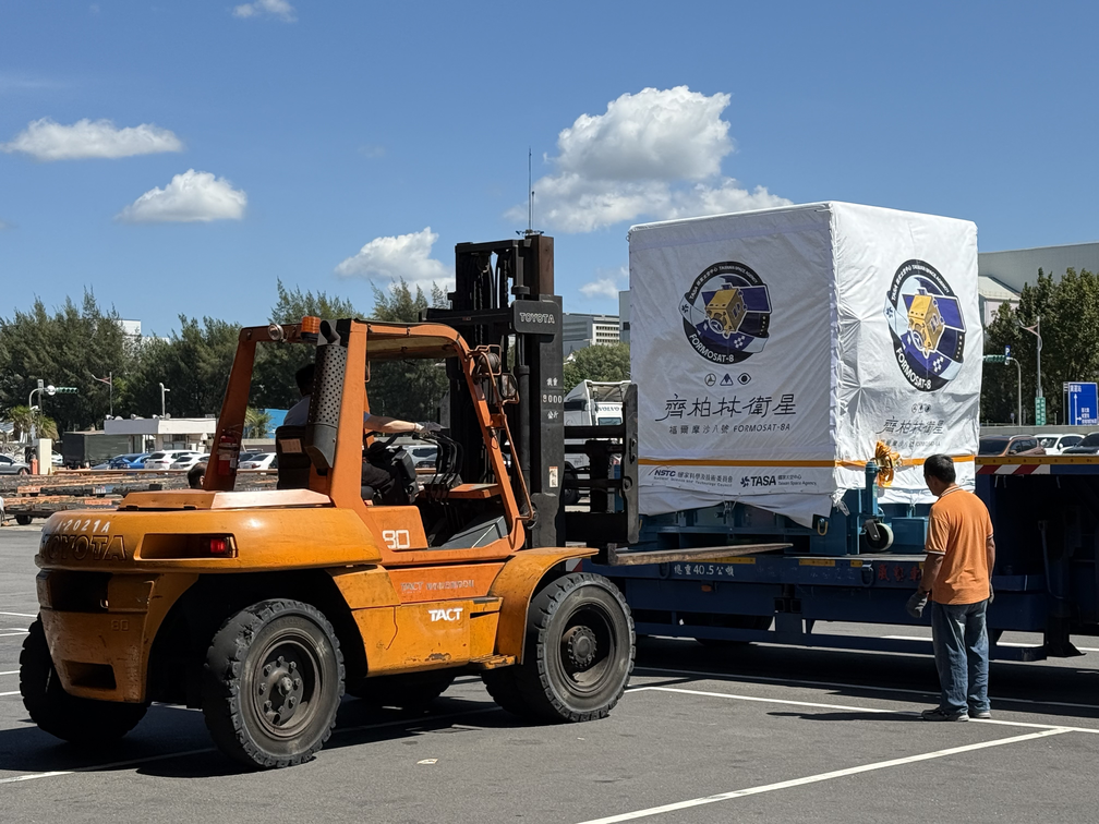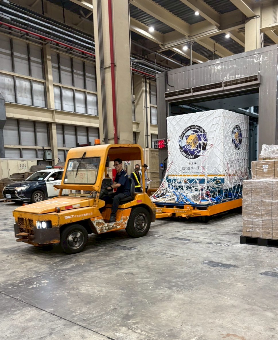 1.「福爾摩沙八號(齊柏林)」衛星於出口倉前卸貨