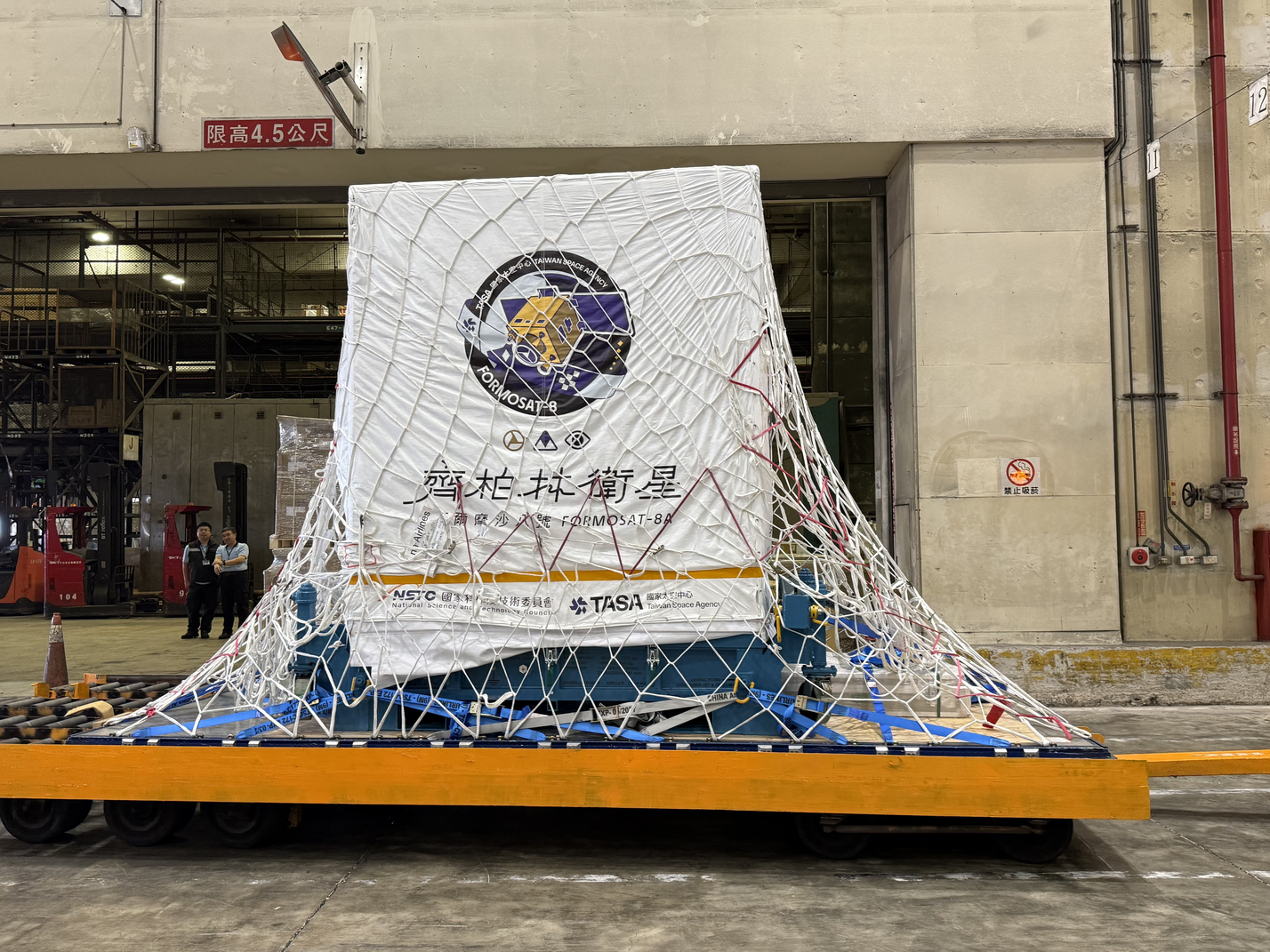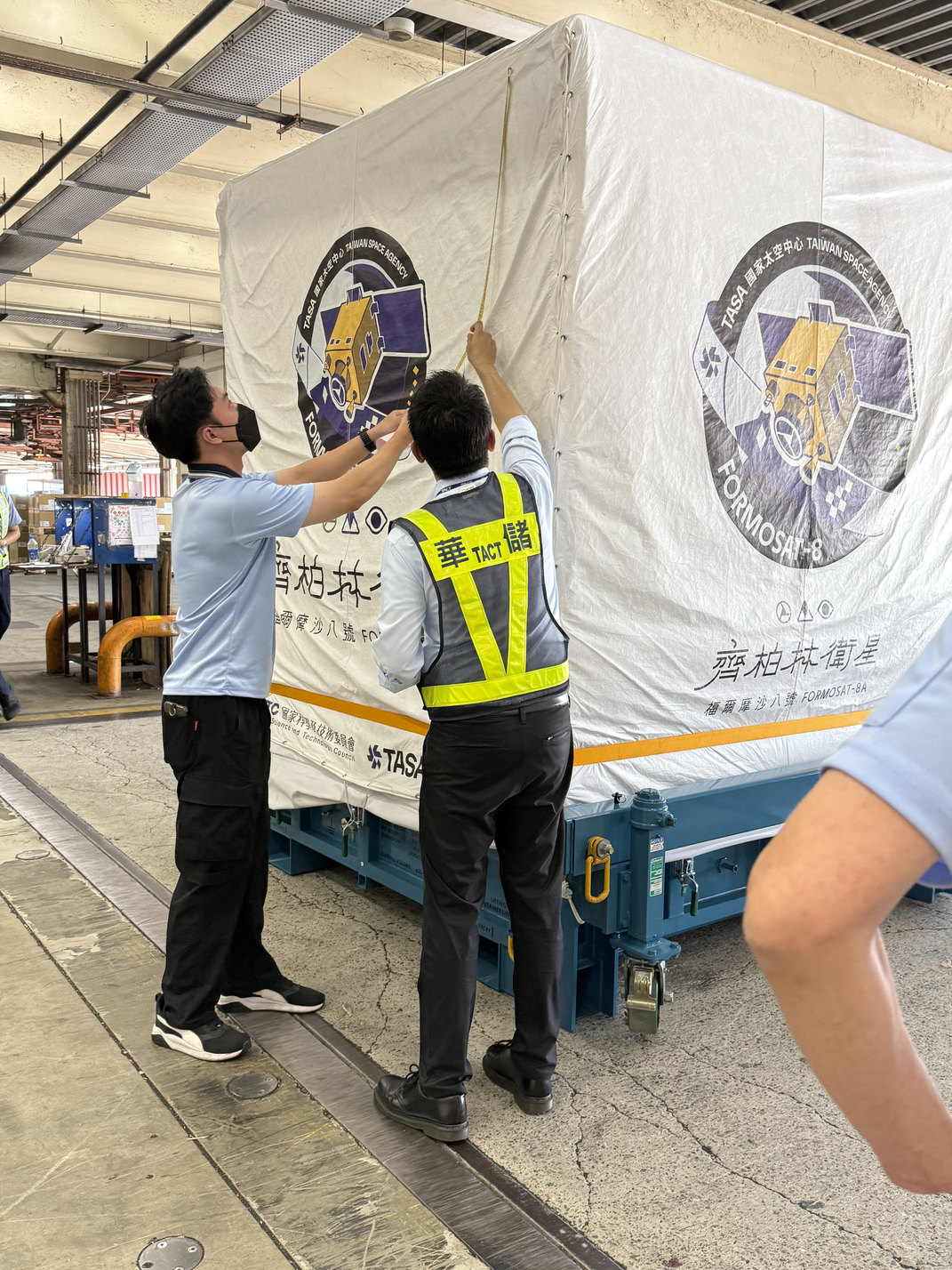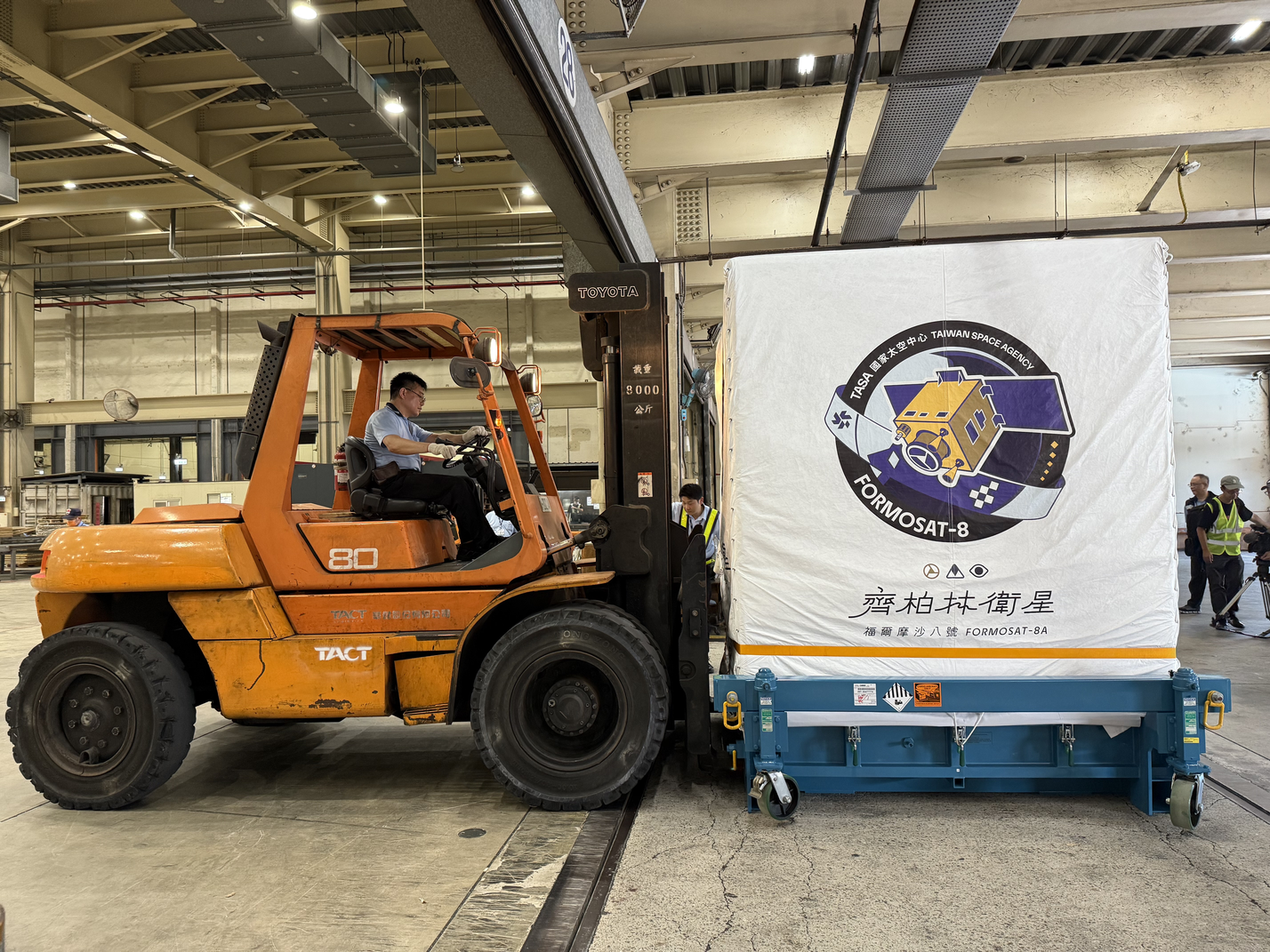 1.「福爾摩沙八號(齊柏林)」衛星於出口倉前卸貨