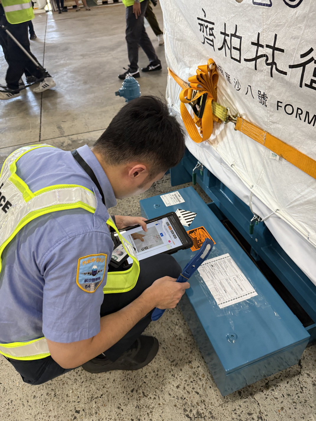 5.航警於出口倉28號倉門執行安全檢查作業