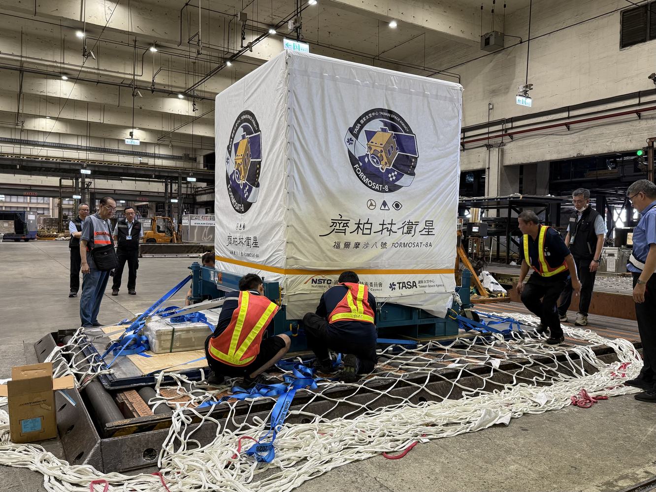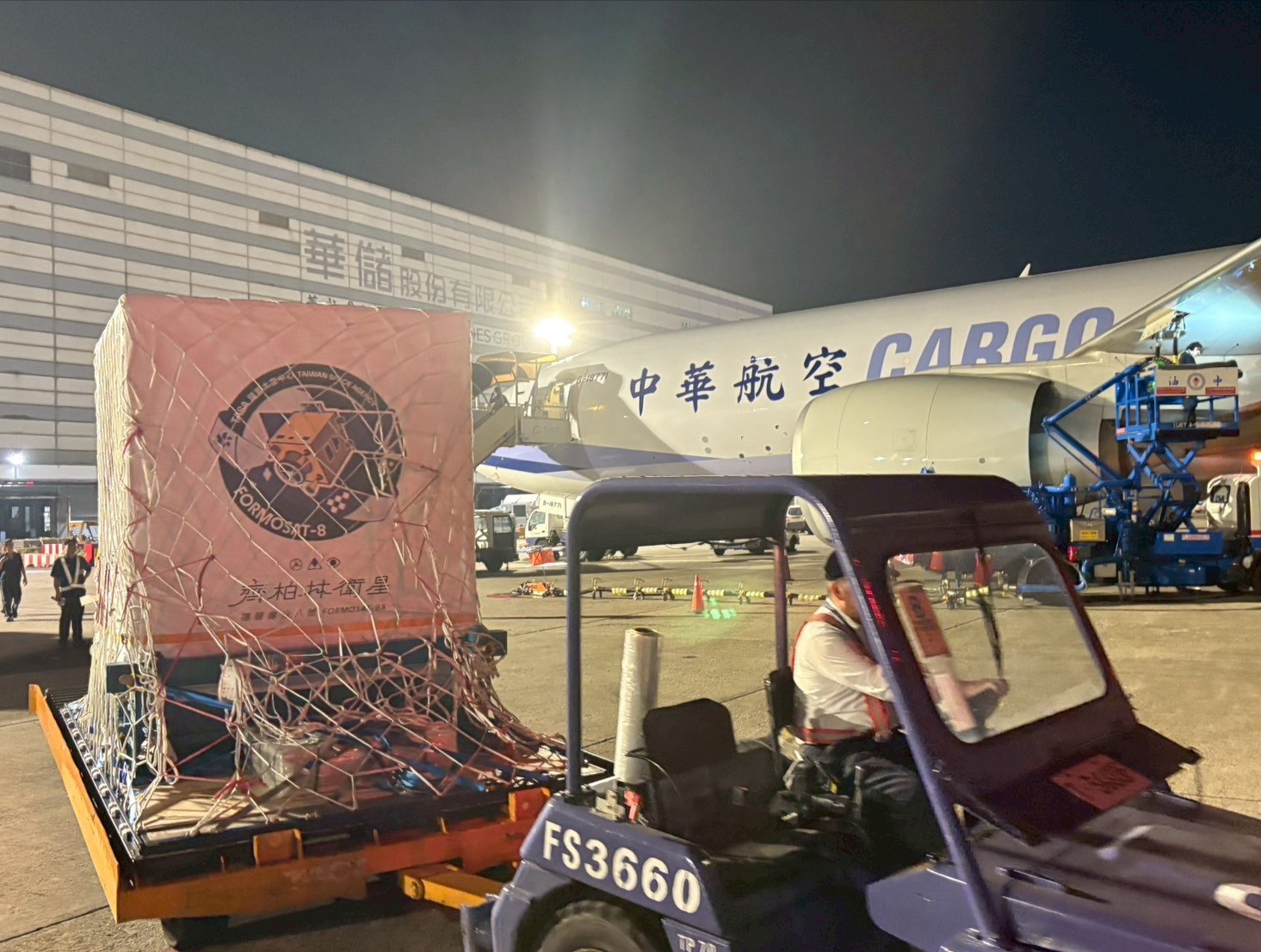 華航集團再次以一站式(one-stop)服務提供本次衛星載運出口專案任務,由華航以嶄新B777F貨機載運,而華儲公司憑藉多次專業處裡福爾摩沙衛星指定倉儲豐富經驗,再次榮幸操作「福爾摩沙八號(齊柏林)」衛星任務,自進倉存儲、打盤包裝,輔以倉內嚴密的CCTV監控、特殊溫控存儲,以謹慎、細心、有效率的服務,順利圓滿完成本專案。