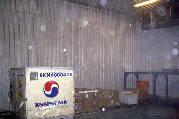 轉口倉 | 溫控庫 | 尺寸(長 x 寬 x 高) | 面積 | 溫度 | 代碼 | 5.7m x 10m x 3.6m | 57.0 ㎡ | 10 ~ 25℃ | S13 | 5.7m x 10m x 3.6m | 57.0 ㎡ | 10 ~ 25℃ | S15 | 備註 | |  |  | | |