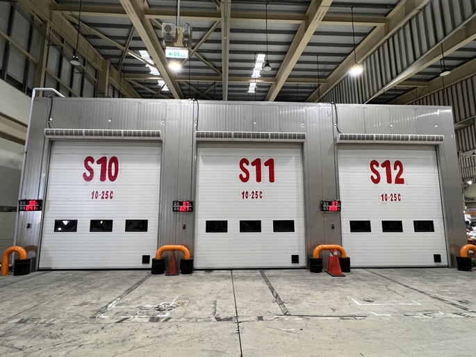 Transit cargo Area | Controllable Temperature Storage | Dimention(L x W x H) | Square Meters | Temperature | Code | 5.7m x 10m x 3.6m | 57.0 ㎡ | 10 ~ 25℃ | S13 | 5.7m x 10m x 3.6m | 57.0 ㎡ | 10 ~ 25℃ | S15 | 備註 | |  |  | |