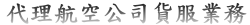 目前本公司承做之貨服代理包括含中國國際航空 (CA客機)、中國貨運航空 (CK)、中國東方航空 (MU)、中國郵政航空 (CF)、